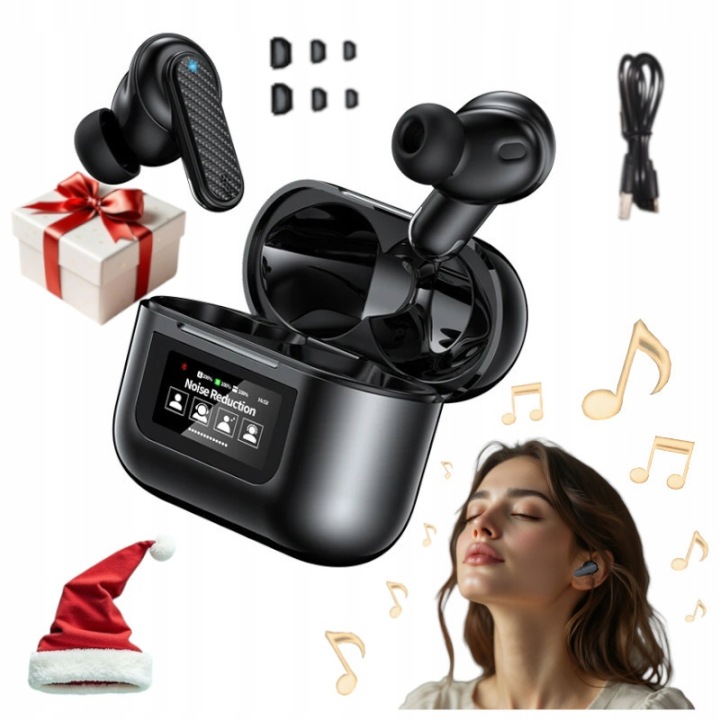 бездротові внутрішньоканальні навушники Bluetooth Чорний меню RU ANC TWS подарунок