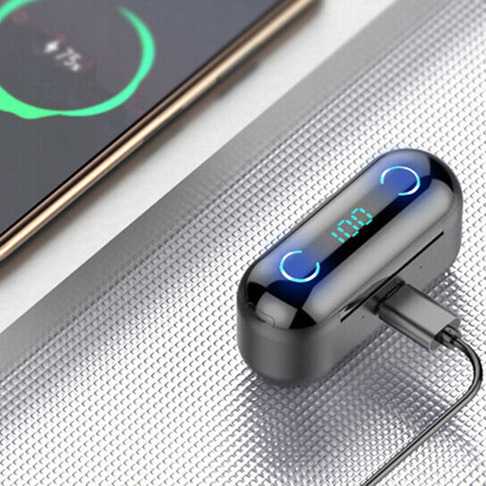 бездротові навушники TWS F9 із зовнішнім акумулятором є одними з найбільш універсальних навушників bluetooth. Вони працюють з будь-яким пристроєм, таким як телефон, планшет, ноутбук або компʼютер, оснащений модулем bluetooth. Навушники TWS-один з найменших наборів навушників із зовнішнім акумулятором, доступних на ринку. Блок живлення 1200 маг, ефективно заряджає ваш телефон, коли у вас закінчується живлення.
