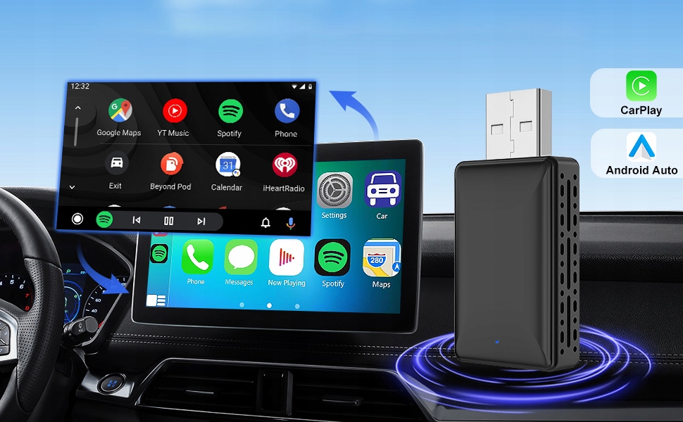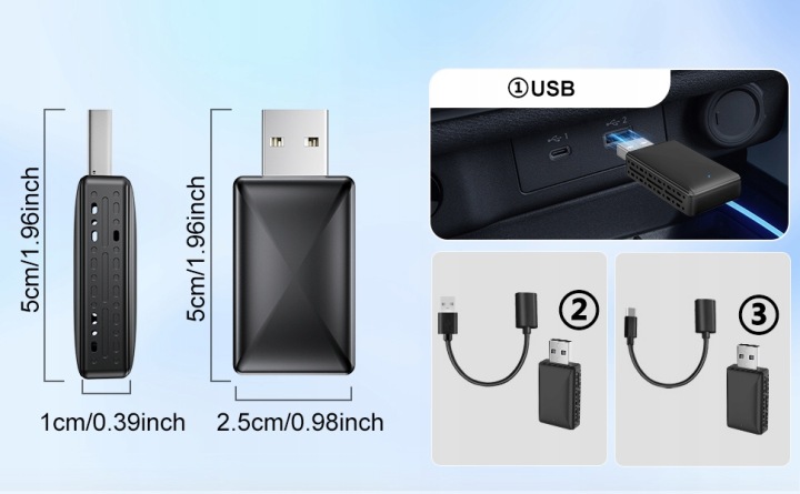 - підключіть пристрій: вставте Mini Wireless CarPlay і Android Auto в USB-порт вашого автомобіля.