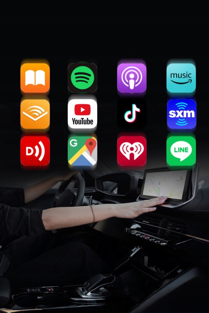 - використовуйте додаток: Тепер ви можете бездротово використовувати такі програми, як карти, Музика, Повідомлення, телефон тощо, керуючи ними за допомогою сенсорного екрана, голосу або кнопок на кермі.Чи>