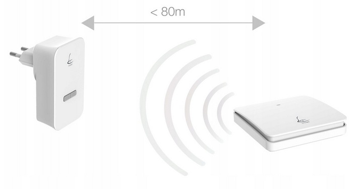 конструкція дверного дзвінка дозволить вам насолоджуватися дзвінком довгі роки незалежно від погодних умов. Він працює відразу після розпакування без необхідності налаштування з можливістю обʼєднання в цілі системи, наприклад, 3 передавача і 1 приймач