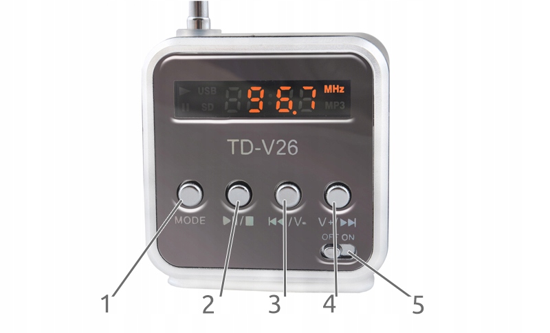 - мульти функціональний - міні-радіо замінює кілька пристроїв в 1. Крім тюнера, пристрій оснащений mp3-плеєром, слотом USB і слотом для карт microSD (TF).має також вхідміні-розʼєм 3,5 мм і може використовуватися в якості Динаміка для інших пристроїв, наприклад смартфона.