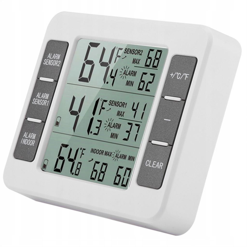 містить 24-годинні записи мінімальної і максимальної температури, тому ви можете легко відстежувати зміни температури в холодильнику і забезпечувати подвійний захист безпеки харчових продуктів.