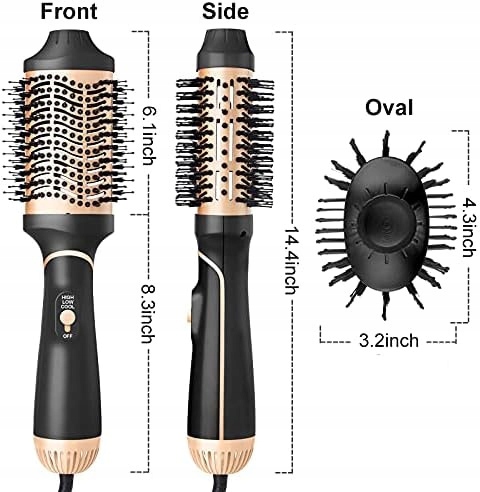 - 【однокрокова щітка для фена】 електрична щітка для волосся 5 в 1-ідеальне поєднання функцій фена, гребінця, Бігуді, випрямляча для волосся і масажної гребінця. Отримайте результати у стилі вітальні за лічені хвилини, не виходячи з власного будинку. У щітці для укладання використовуються недолугі нейлонові щетинки, які запобігають кучеряве волосся і надають їм гарний блиск.Чи>