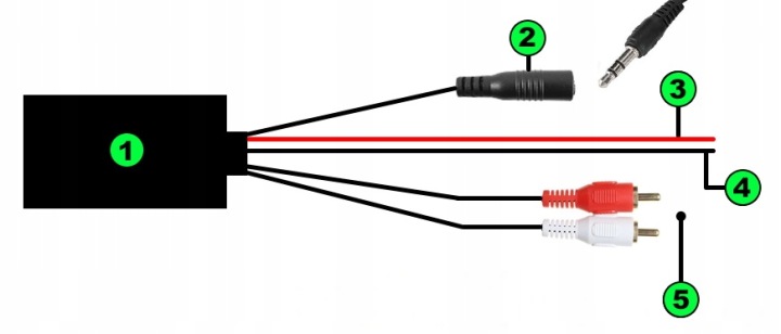аудіосигнал передається через 2 виходи Chinch, вбудовані в модуль. використання цього універсального стандарту дозволяє використовувати адаптер в більшості радіоприймачів з входом Cinch / RCA.