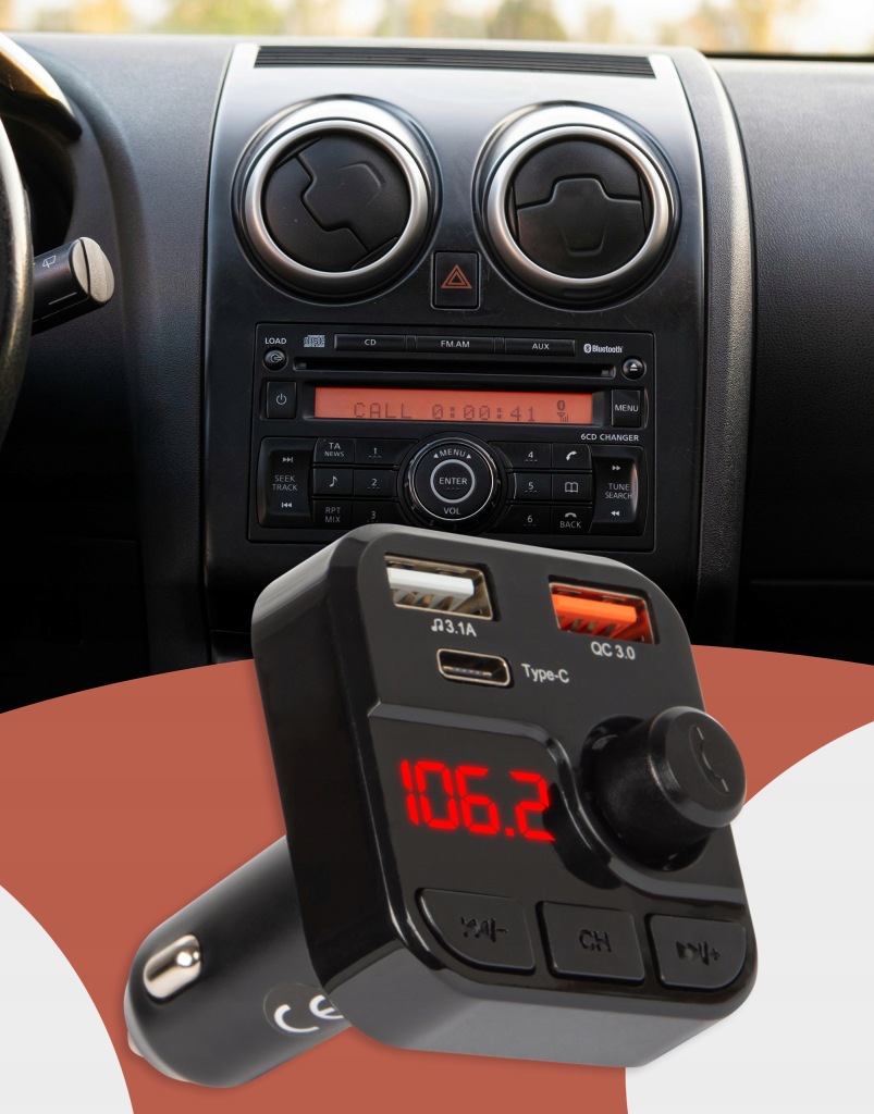 за допомогою цього пристрою ви також можете відтворювати музику через свій телефон, флешки, карти памʼяті microSD або будь-який інший пристрій з функцією Bluetooth. Передавач живиться безпосередньо від прикурювача 12-24 ст.