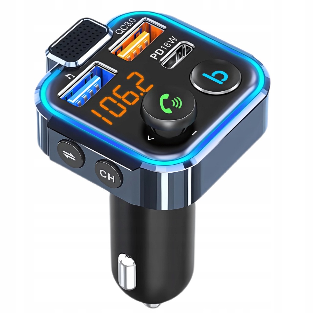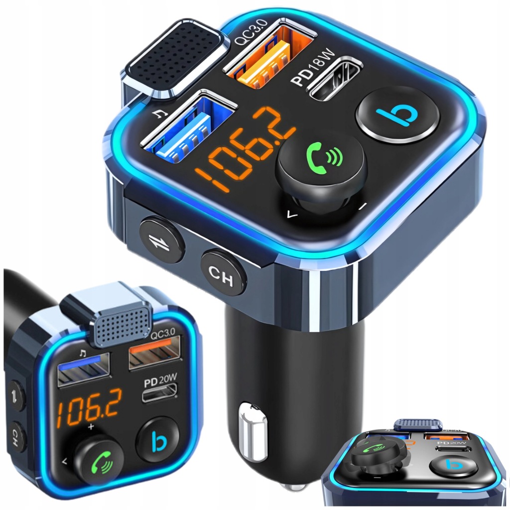 ✅ Перетворіть свій автомобіль в справжній мультимедійний центр за допомогою Bluetooth FM-передавача з швидким зарядним пристроєм і 3 портами USB.