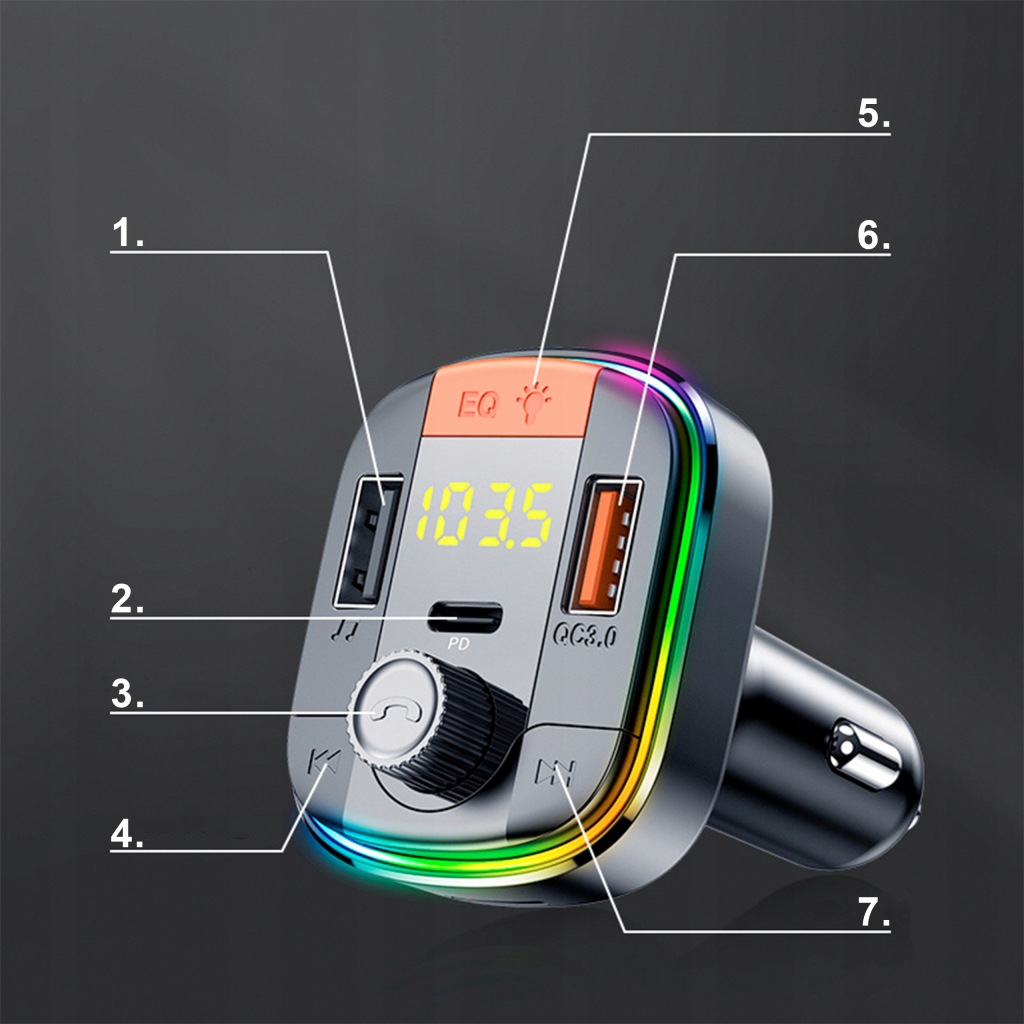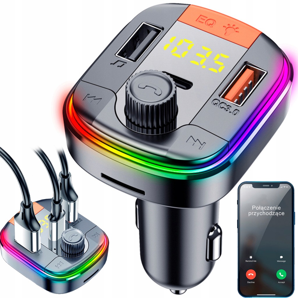 BLUETOOTH ПЕРЕДАВАЧ ЗАРЯДНИЙ ПРИСТРІЙ ШВИДКИЙ АВТОМОБІЛЬ FM USB C RGB КАРД-РІДЕР