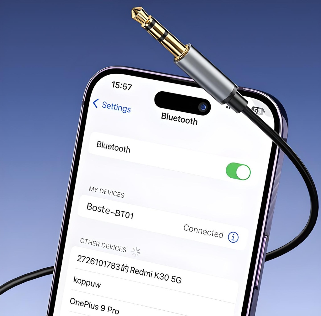 адаптер простий в установці і сумісний з більшістю аудіопристроїв, оснащених розʼємом AUX, що робить його надзвичайно функціональним доповненням.
