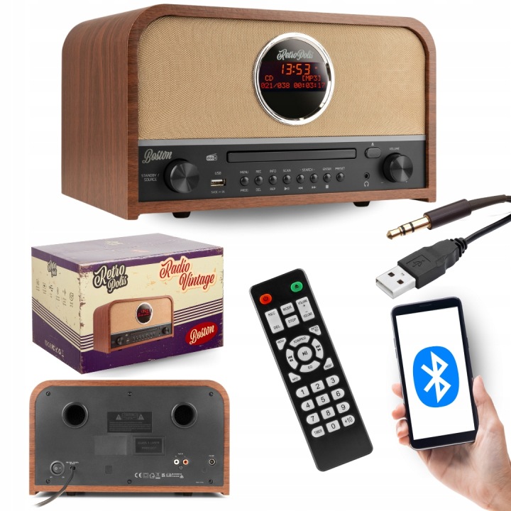 Retropolis - це бренд, який переносить вас у часі, в роки вашого дитинства, ваших батьків, бабусь і дідусів. У той же час Радіо цього бренду сходить до кращих традицій світової музики, черпаючи жмені з стилів, які захоплювали і досі захоплювали мільйони. Модель Boston - це данина поваги місту, з якого родом група з сильним і виразним звучанням Aerosmith . Виріб, який стане прикрасою вашого інтерʼєру незалежно від того, в якому стилі ви його оформили. У той же час, незважаючи на те, що дизайн заснований на вінтажному стилі , Він завантажений технічними новинками, які полегшать вам використання радіо незалежно від умов. Bluetooth, відтворення широкого діапазону FM/AM,музика з телефону за допомогою Bluetooth-звʼязку або флешки. все це можливо завдяки нашомуBoston . Крім того, є вбудований програвач компакт-дисків.