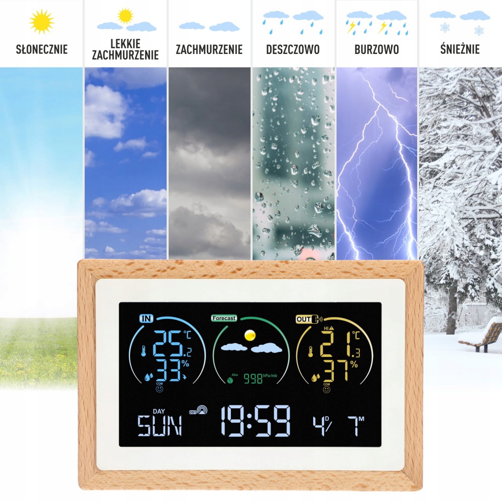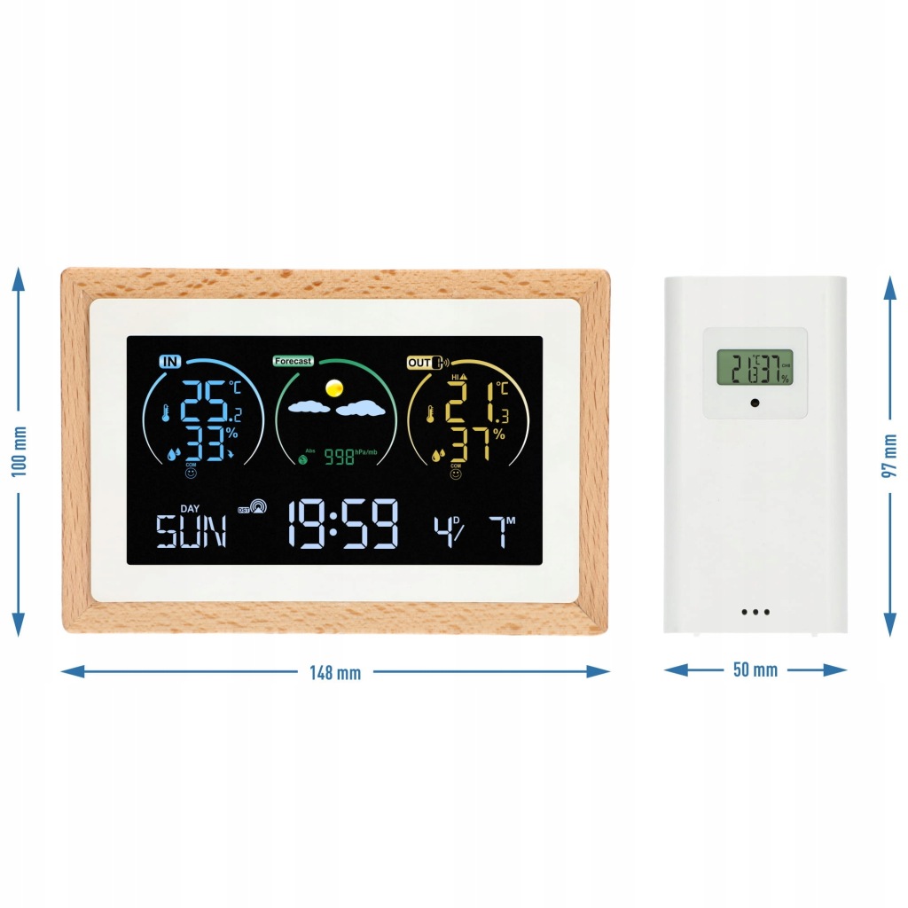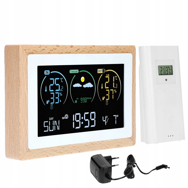 метеостанція також оснащена календарем і годинником з будильником, так що на одному пристрої ви можете зберегти свої плани і встановити будильник на час, відповідний для початку їх виконання.мінімалістський дизайн натякає на скандинавську простоту і перевагу в дизайні. Білий і необроблене дерево ідеально впишуться в будь-який інтерʼєр, ставши його невідʼємною частиною і практичним прикрасою.