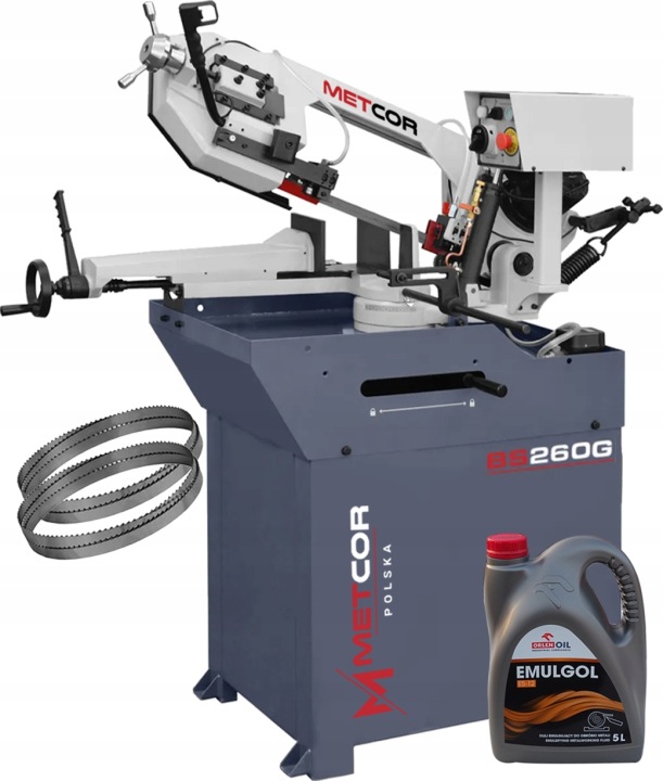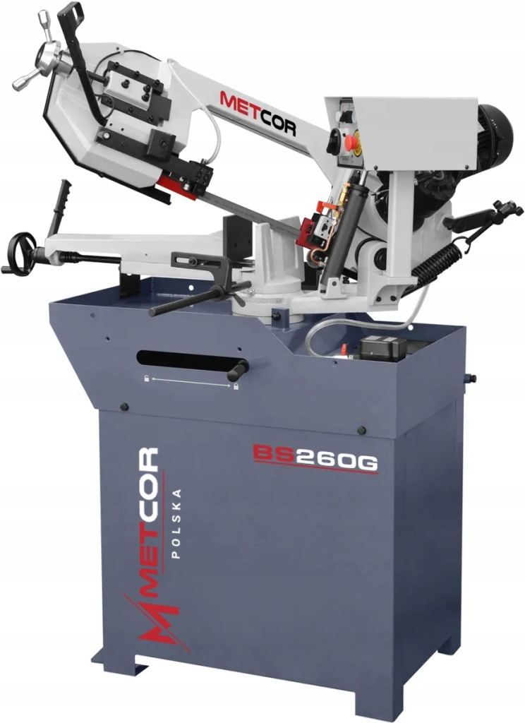 стрічкопильний верстат METCOR BS 260g завдяки оснащенню гідравлічним циліндром, охолодженням і торсіонним важелем до 60 ° у поєднанні з пильними полотнами відомої німецької фірми Rontgen широко використовується на всіх слюсарних заводах, де важливі точність, якість і швидкість різання.