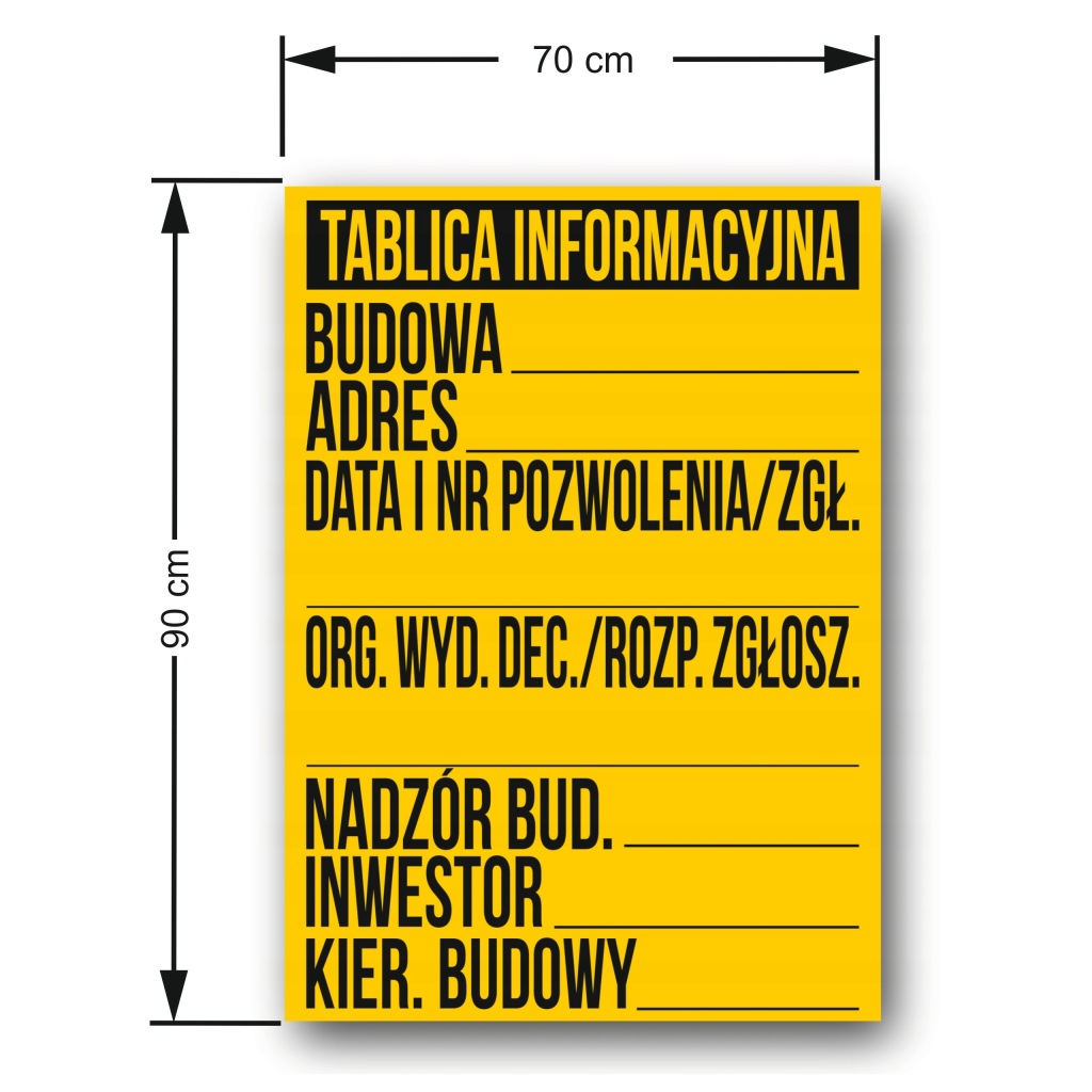 Будівельна інформаційна дошка для будівництва OHS велика / 70X90CM / PVC 1MM