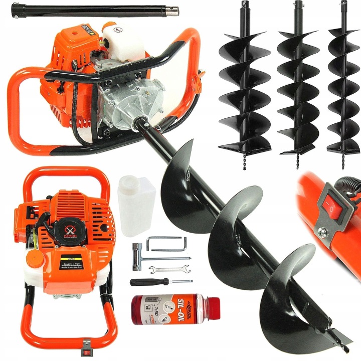 пристрій призначений для робіт по огорожі та будівельних робіт. Дуже міцна шестерня, що дозволяєсвердлити по вертикалі і горизонталі . Поршень на двох кільцях, збалансований шатун. Міцна конструкція. відцентрова муфта для безпечної роботи . знаходить застосування при будь-яких забірних роботах, ідеально підходить також для посадки, лісовідновлення, часто використовується на фермах, а також компаніями, що займаються виготовленням парканів.