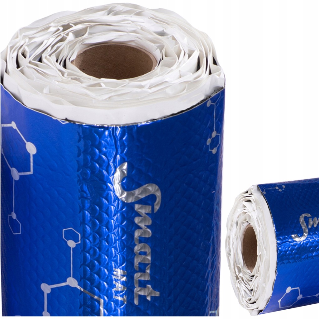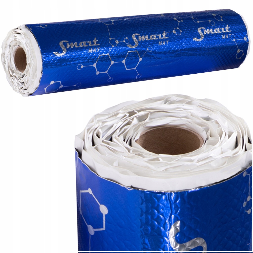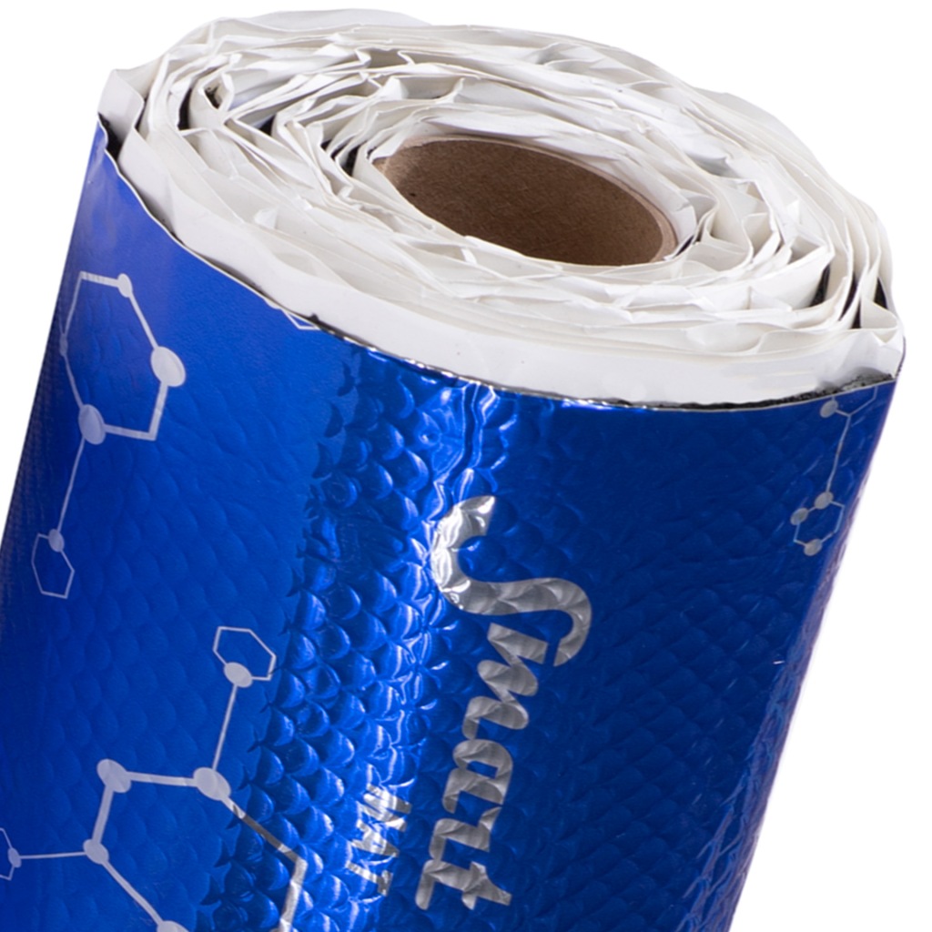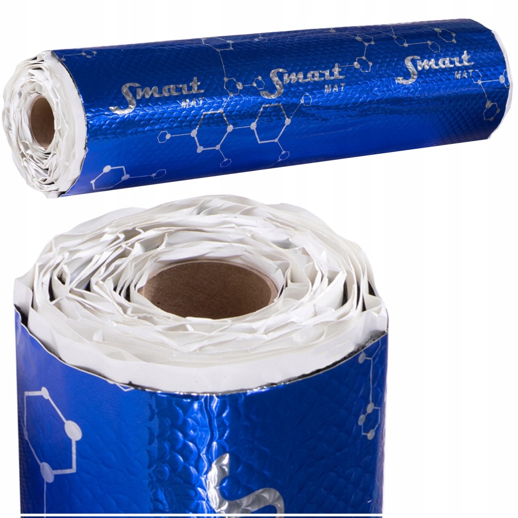самоклеючий бутиловий килимокзменшує тремтіння, бурчання і дзижчання і створює барʼєр для шуму . Завдяки дуже високій пластичності і зовнішньої синій справжній алюміній герметизує і термічно ізолює.