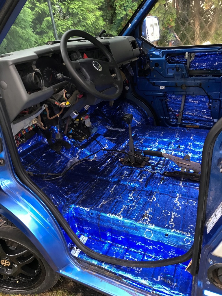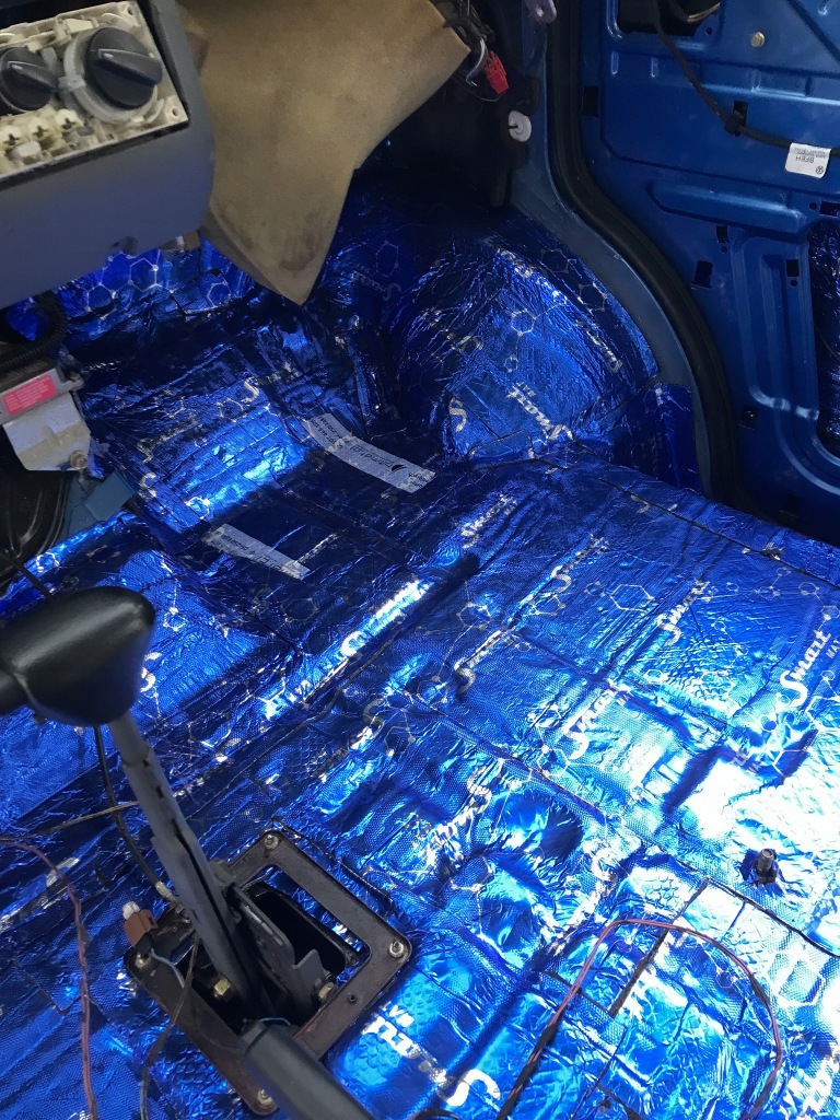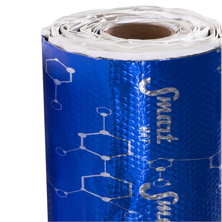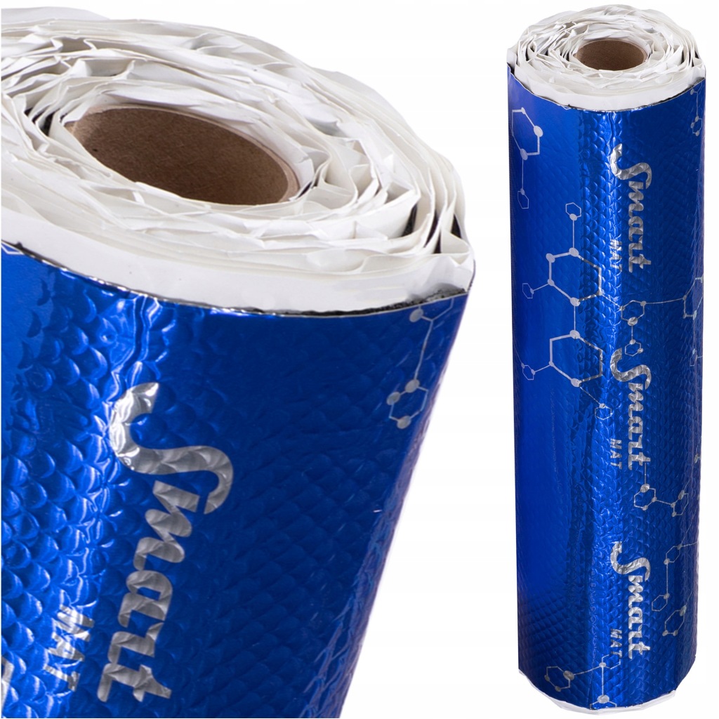 самоклеючий бутиловий килимокзменшує тремтіння, бурчання і дзижчання і створює барʼєр для шуму . Завдяки дуже високій пластичності і зовнішньої синій справжній алюміній герметизує і термічно ізолює.