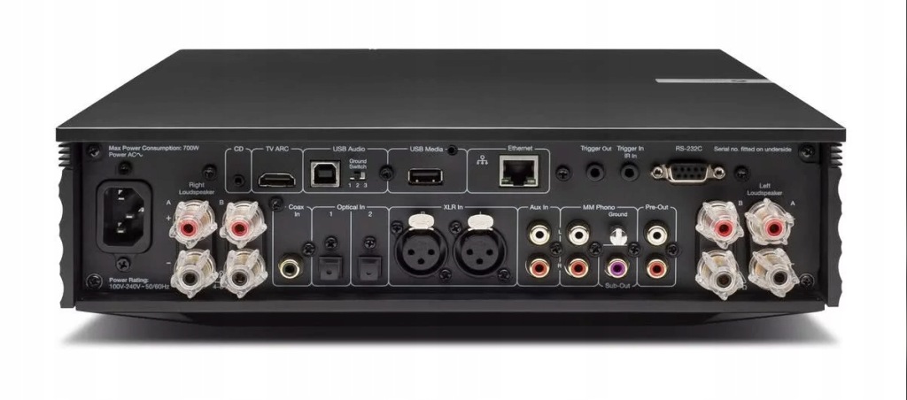 модель Evo 150 додатково оснащена наступними функціями: вбудований фоно-передпідсилювач для вставок типу мм, асинхронний аудіовхід USB, збалансовані входи XLR і два набори виходів динаміків, що дозволяють підключити дві пари динаміків.