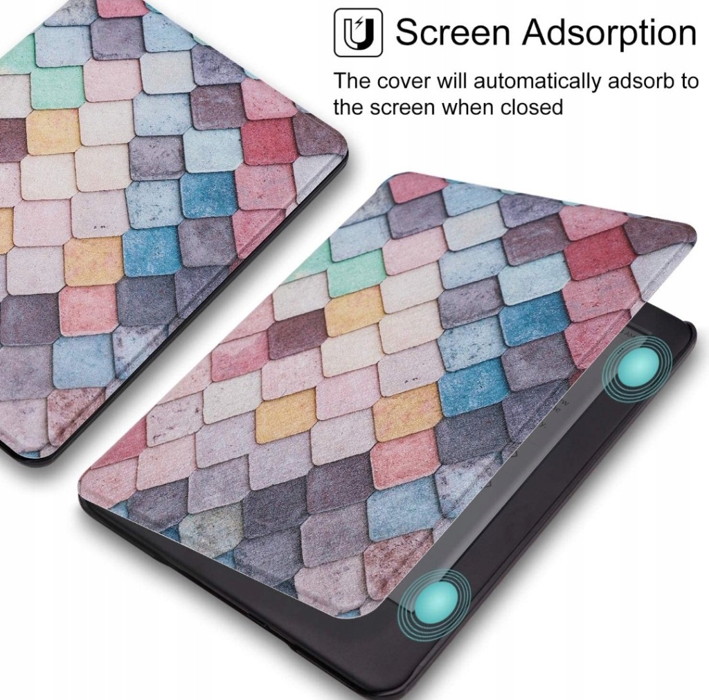 - поглинання екрану: передня кришка автоматично поглине екран Kindle при закритті, надійно тримайте пристрій закритим, коли ви кладете його в сумку або багаж