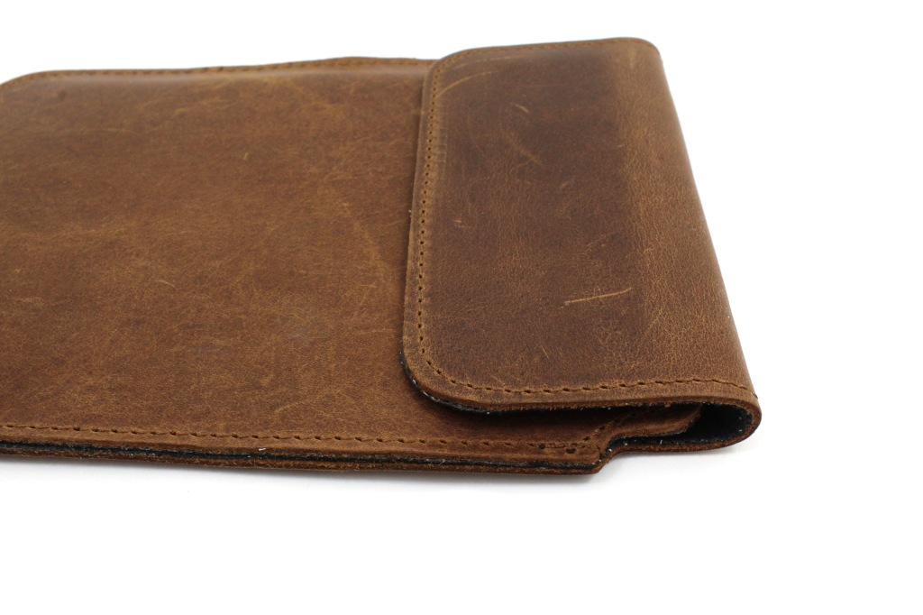 виготовлений з натуральної коровʼячої шкіри оснащений клапаном , який закривається на 2 магніту для запобігання випадання пристрою.