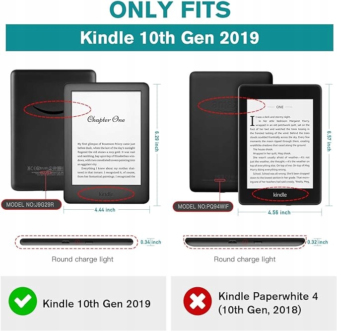 ідеально підходить лише для Kindle 10. покоління 2019 року (не підходить для абсолютно нового Kindla 11. 2022 року); не відповідає попередньому поколінню Kindla, Kindle Paperwhite та Kindle Oasis.