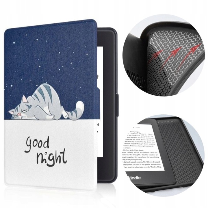 спеціальний чохол для читання бренду Kindle Paperwhite 1/2/3 виготовлений з синтетичної шкіри, силікону і приємного на дотик матеріалу зсередини корпусу. Конструкція корпусу забезпечує легку установку зчитувача і забезпечує його захист від подряпин, пилу, саден або відбитків пальців. Чохли доступні в декількох колірних варіантах з графікою.