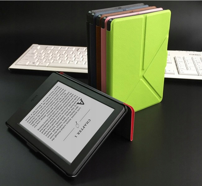 спеціальний чохол для читання бренду Kindle Paperwhite 5 виготовлений з синтетичної шкіри, пластика і приємного на дотик матеріалу зсередини корпусу. Версія орігамі означає, що відкидна кришка корпусу складається і формується ніжка для підтримки читача, як по вертикалі, так і по горизонталі. Конструкція корпусу забезпечує легку установку зчитувача і забезпечує його захист від подряпин, пилу, саден або відбитків пальців. Чохли доступні в декількох модних і яскравих кольорах.