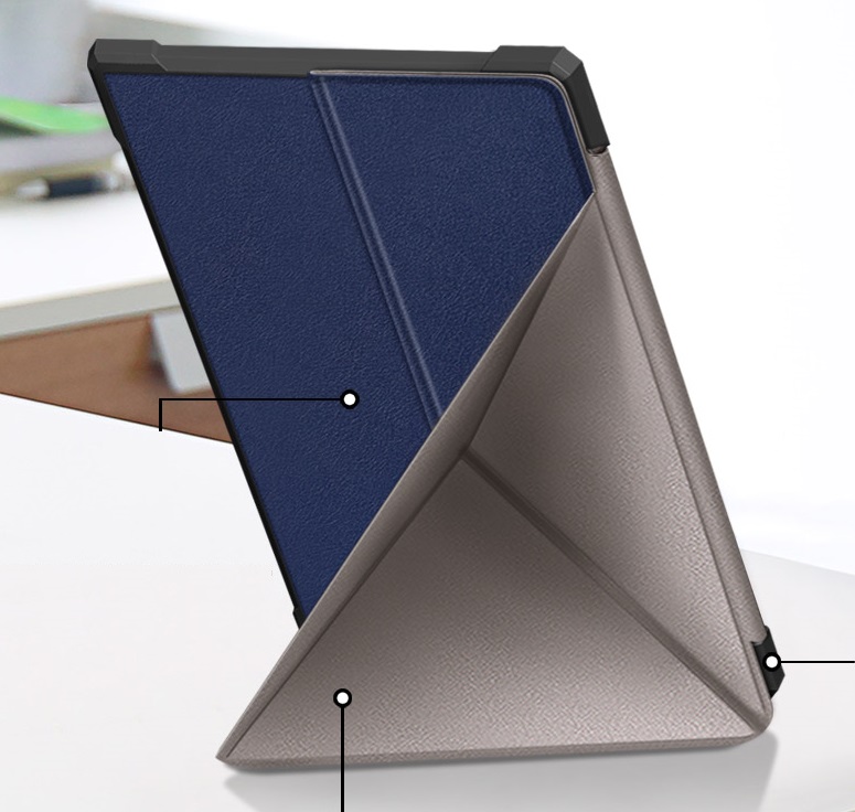 чохол дозволяє розташувати зчитувачв зручному положенні завдяки обкладинці , яка складається, як орігамі , утворюючипідставку для пристрою.