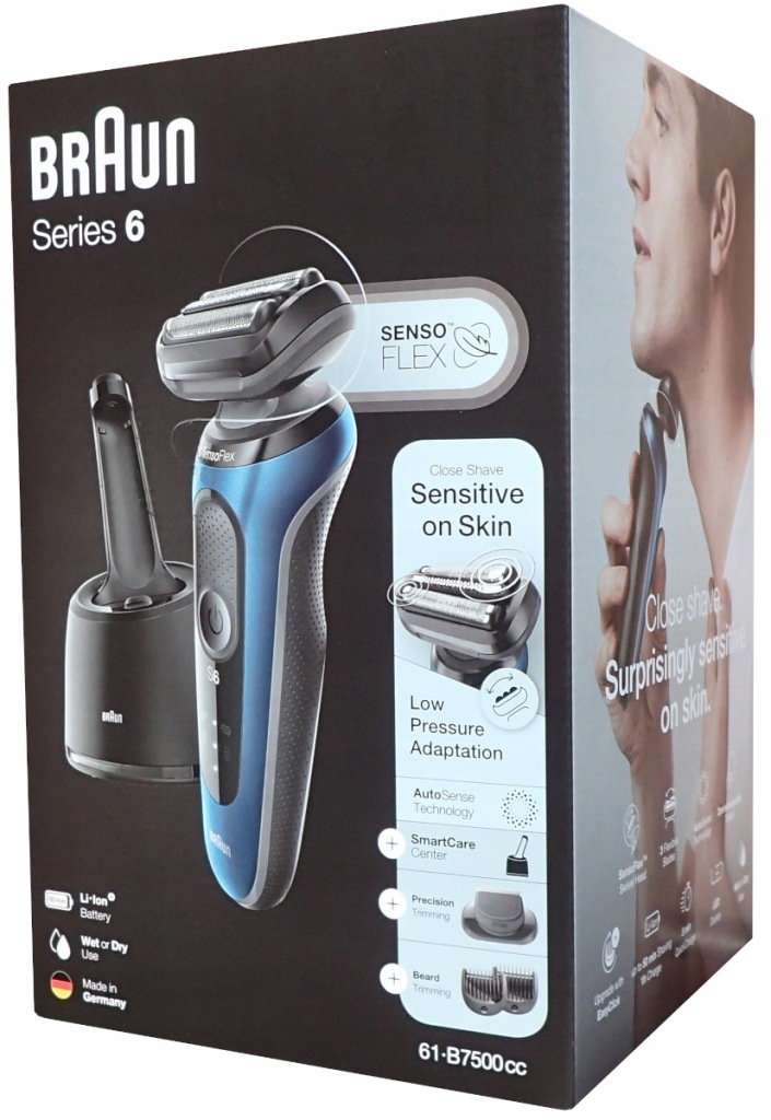 Braun Series 6 61-b7500cc-це бритва, яка має 3 гнучких леза , які адаптуються до форми обличчя, полегшуючи процес гоління.