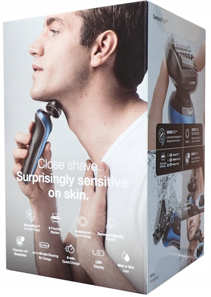 бритва оснащена поворотною головкою sensoflex і лезами SensoFoil, які роблять пристрій більш безпечним для чутливої шкіри і в той же час забезпечують ретельне гоління.