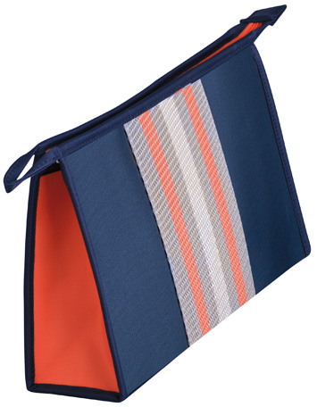 Виготовлена з водонепроникного матеріалу темно-синього кольору з помаранчевою обробкою.