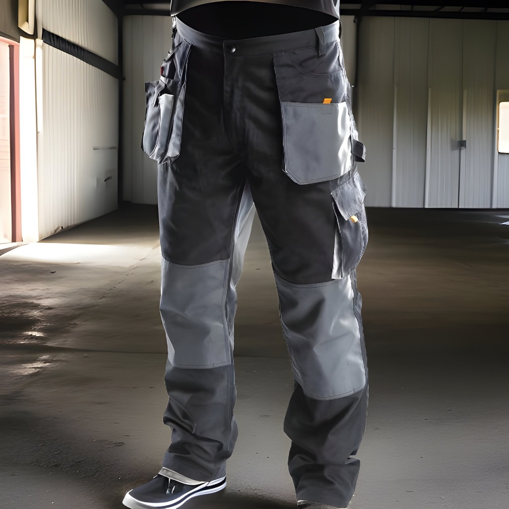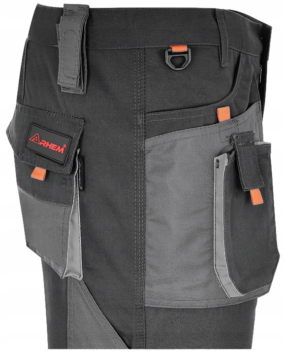 ✔ штани для талії Flexвиготовлені з дуже міцної тканини (80% поліестер 20% бавовна) сірого кольору з графітовими і помаранчевими вставками.