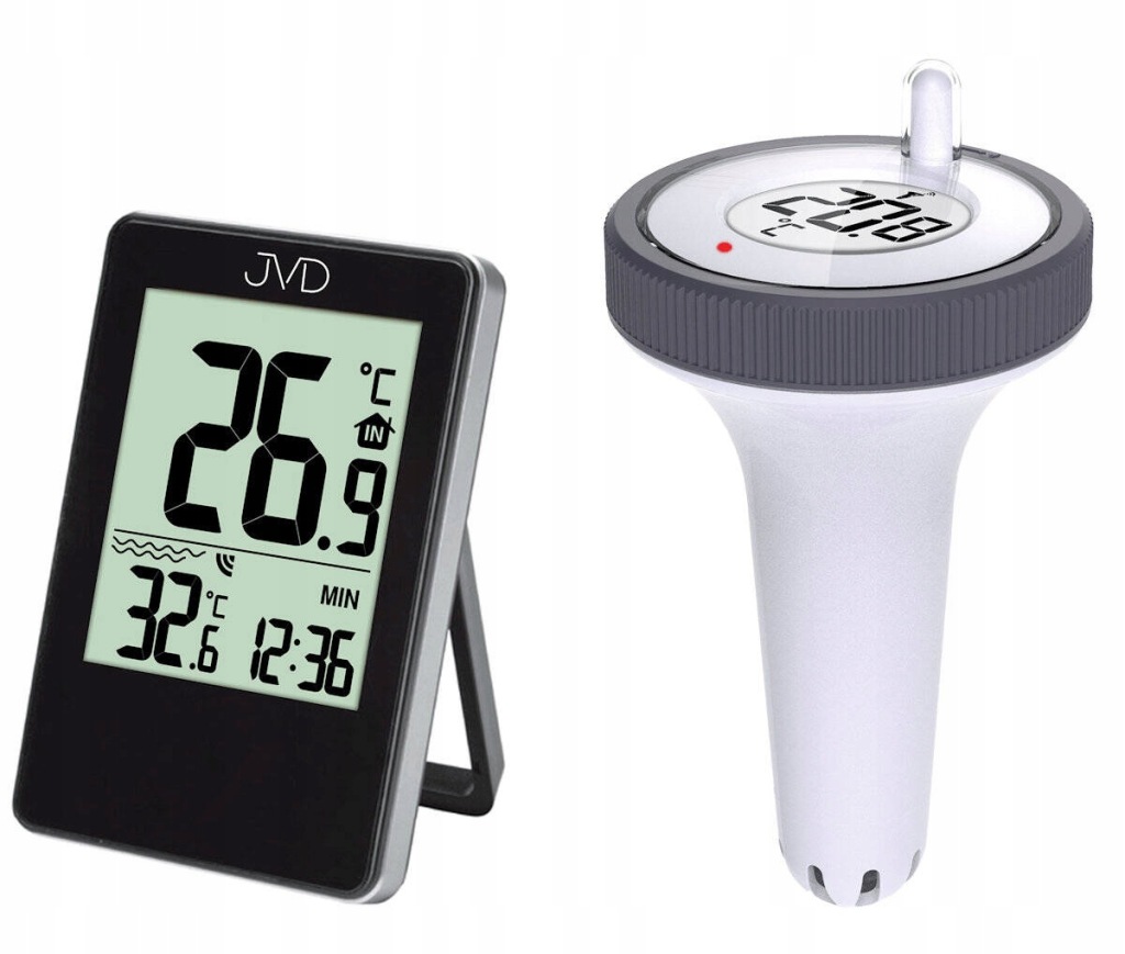 читаний відкритий / закритий термометр для басейну з годинником JVD t3351.2. Температура памʼяті в комплекті зонд для басейну