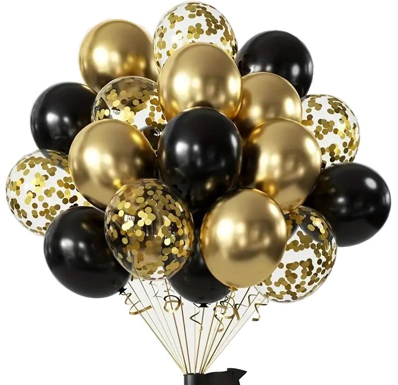 чорний, золотий і конфетті хромовані кулі на 18, 40, 50 день народження набір P29 злотих