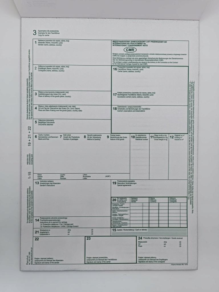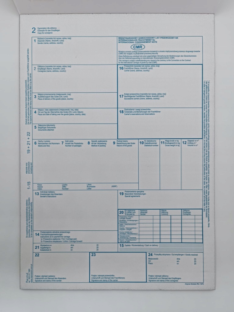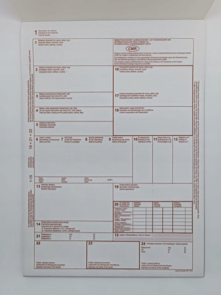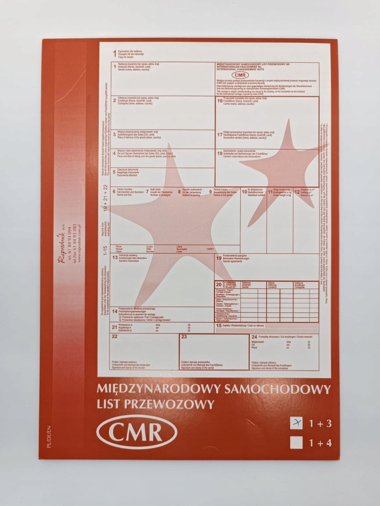 CMR міжнародний автомобільний пакувальний лист 1 + 3 A4 CMRKI