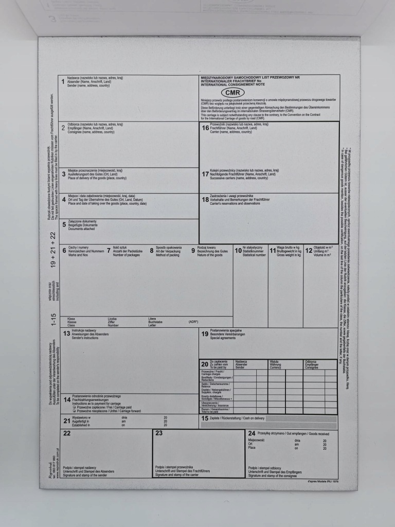 CMR-4 міжнародний автомобільний пакувальний лист 4-картковий, шаблон відповідає стандарту IRU 1976.