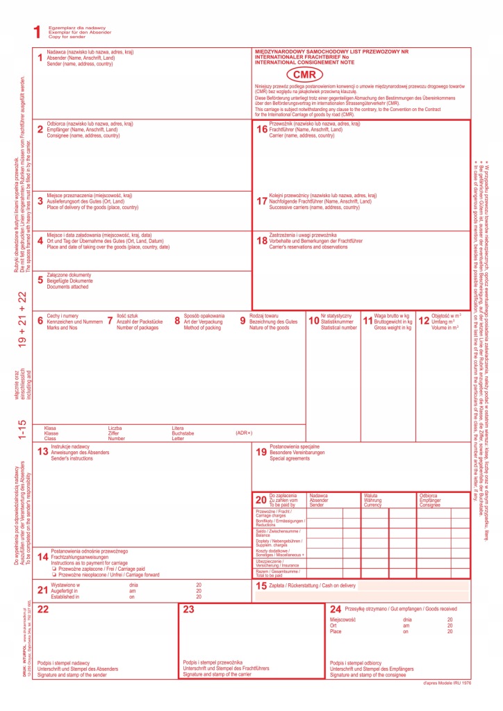CMR Міжнародний пронумерований коносамент (org + 3 k), тип 800-1N