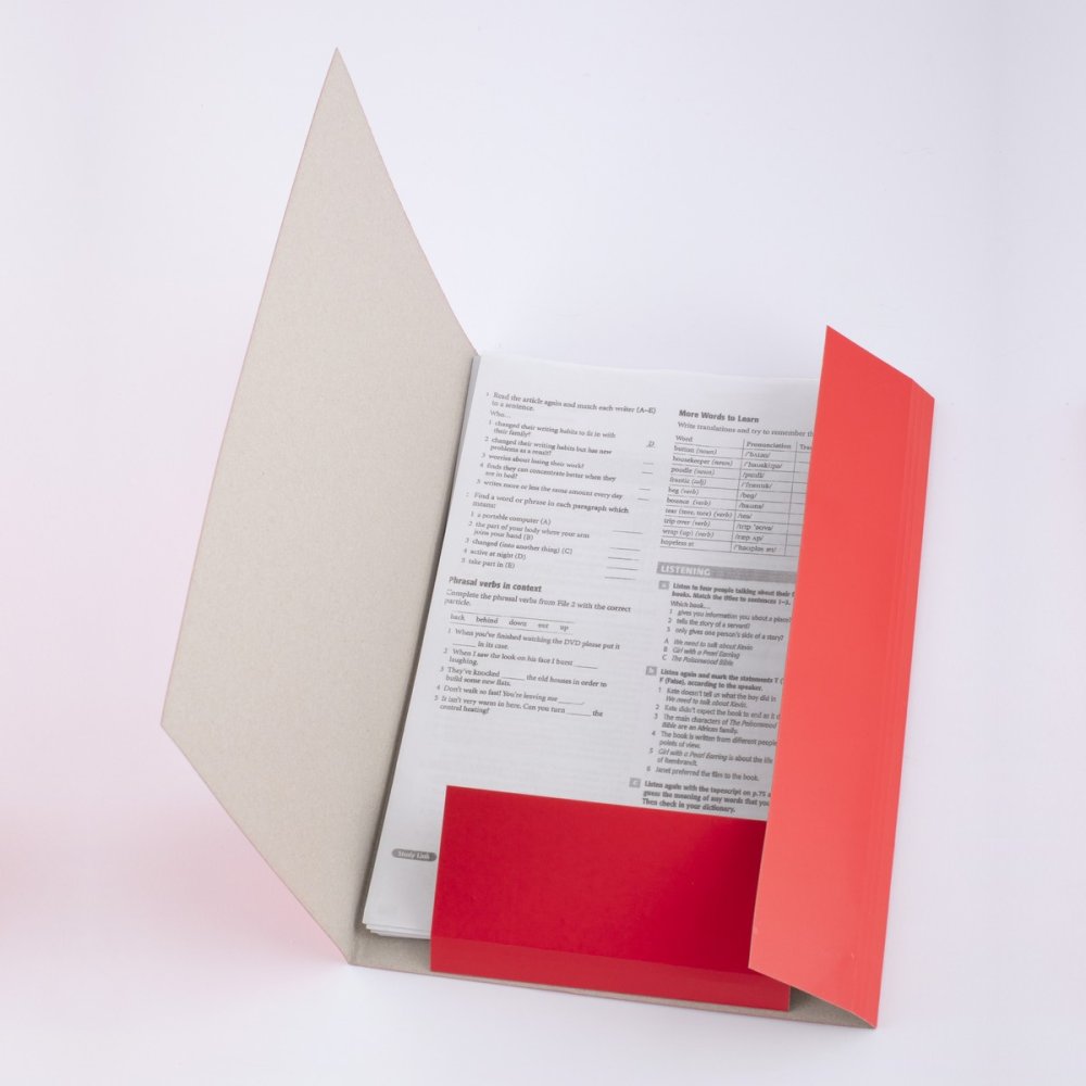 Гумки для певного кутового натягу і три клапана під кришкою забезпечують надійну спинку і запобігають висипання документів