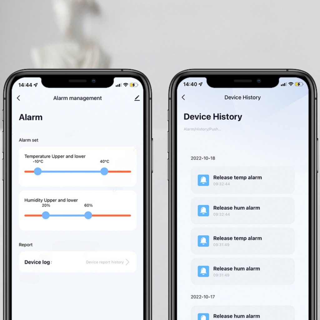 додаток "Tuya" дозволяє встановити діапазон допусків температури та вологості. Коли значення будуть вище або нижче, смартфон буде сповіщати вас по звуку і відправляти повідомлення.