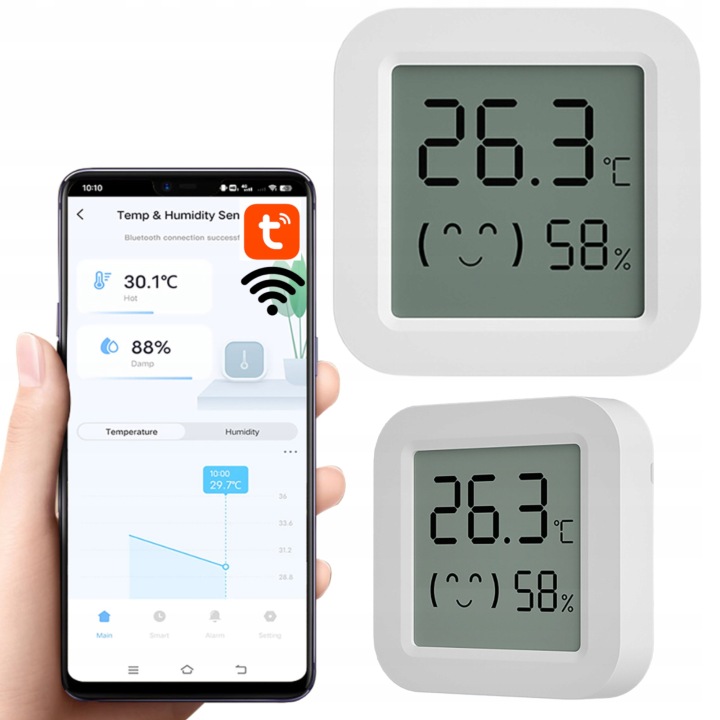 пристрій має вбудовані датчики, які вимірюють вологість і температуру.ці дані можна прочитати у додатку Tuya. вони особливо корисні для створення сцен наприклад, включення кондиціонера при температурі вище 25°C. Крім того, можна встановити сигнали тривоги при перевищенні заданих меж Rh і °C і змінити одиниці виміру на ° F.