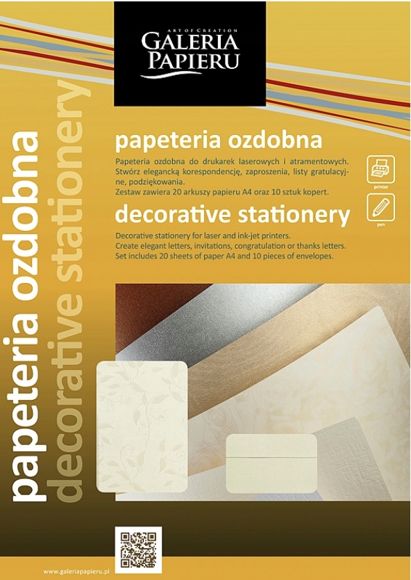 - упаковка включає: 20 аркушів паперу формату А4 + 10 конвертів DL