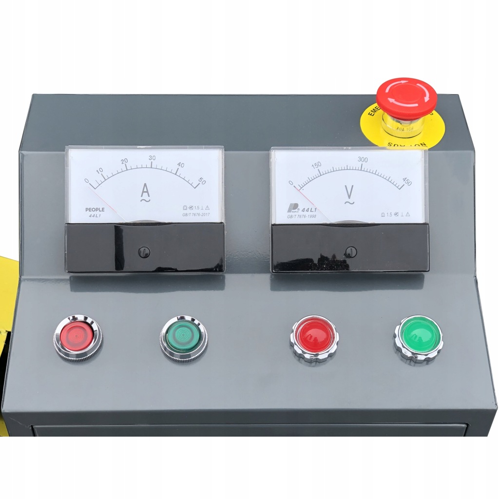 ✅ Панель управління оснащена аварійним вимикачем і двома індикаторами: миттєвого споживання струму і напруги.