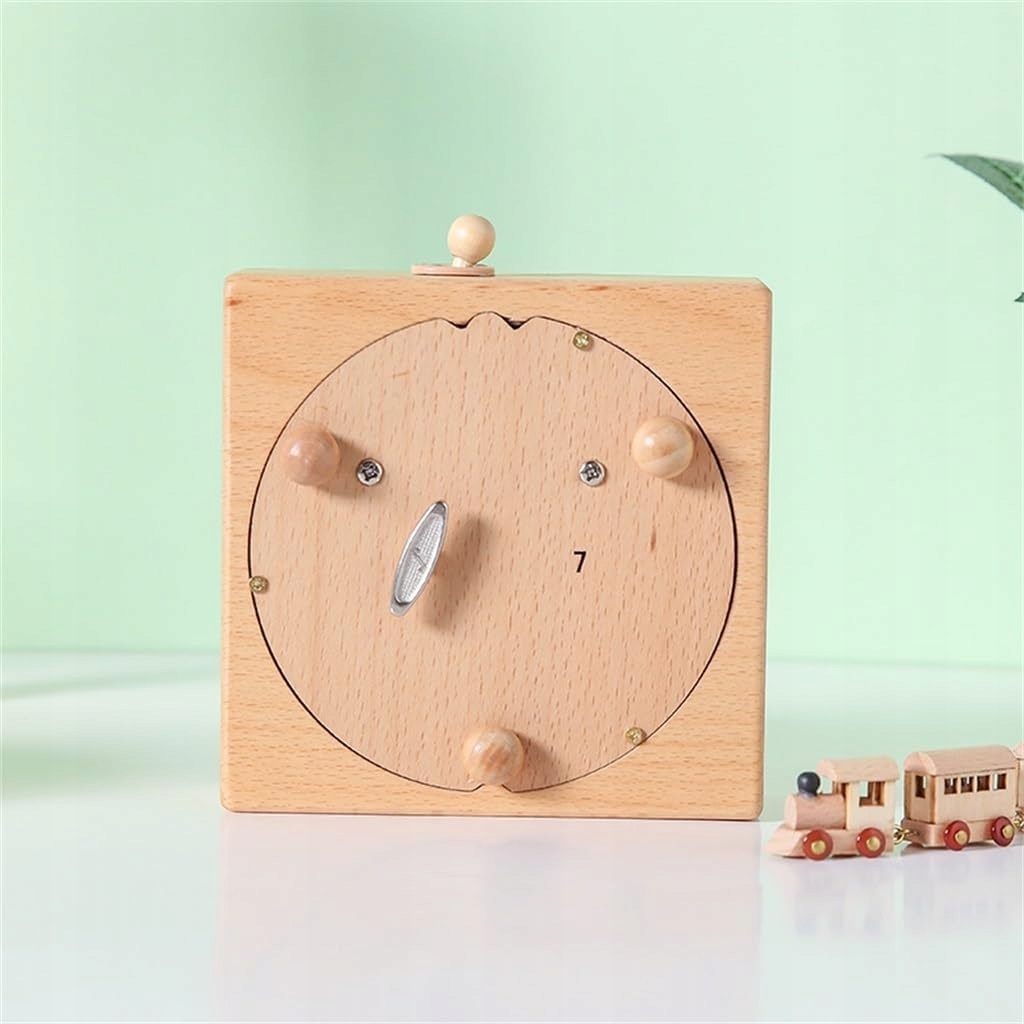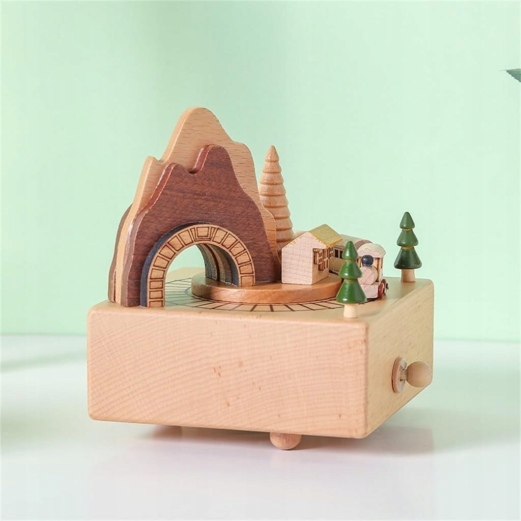 чарівна деревʼяна Музична скринька з рухомими елементами поїзда, який їде по позначеній доріжці в такт музиці, не тільки заспокоїть вашого малюка, але і стане красивим і практичним прикрасою дитячої кімнати.