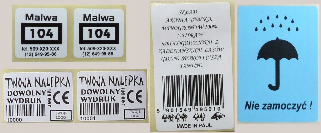 на етикетках ми робимо будь-яку чорну печатку відповідно до запиту Клієнта.