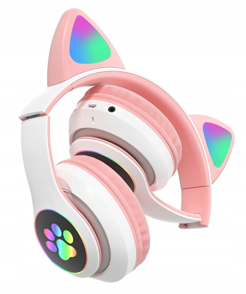зручні бездротові навушники-вкладиші для дітей. характерні котячі вуха зі світлодіодним підсвічуванням дозволять вашій дитині виділитися з навколишнього середовища. використання високошвидкісного модуля Bluetooth 5.0 дозволяє зручно використовувати пристрій (діапазон до 10 метрів). живлення від вбудованої батареї .це відмінний і дуже практичний гаджет для активних людей і всіх тих, хто цінує зручність використання обладнання.