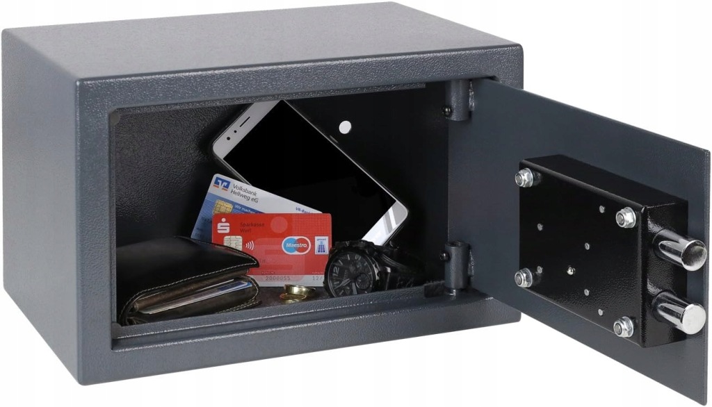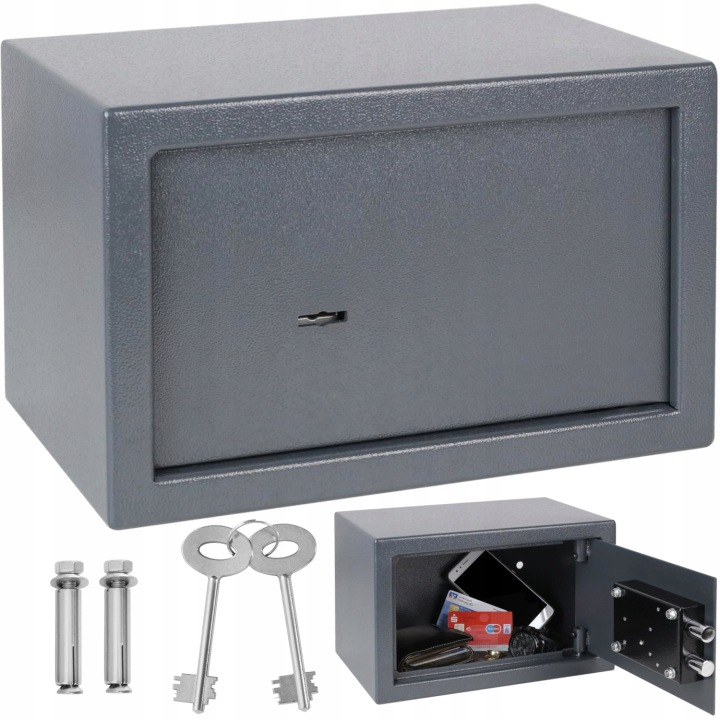 твердий замок: Сейф поставляється з механічним замком з подвійним ключем