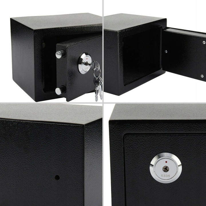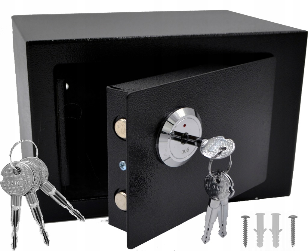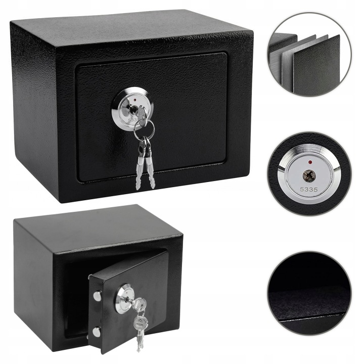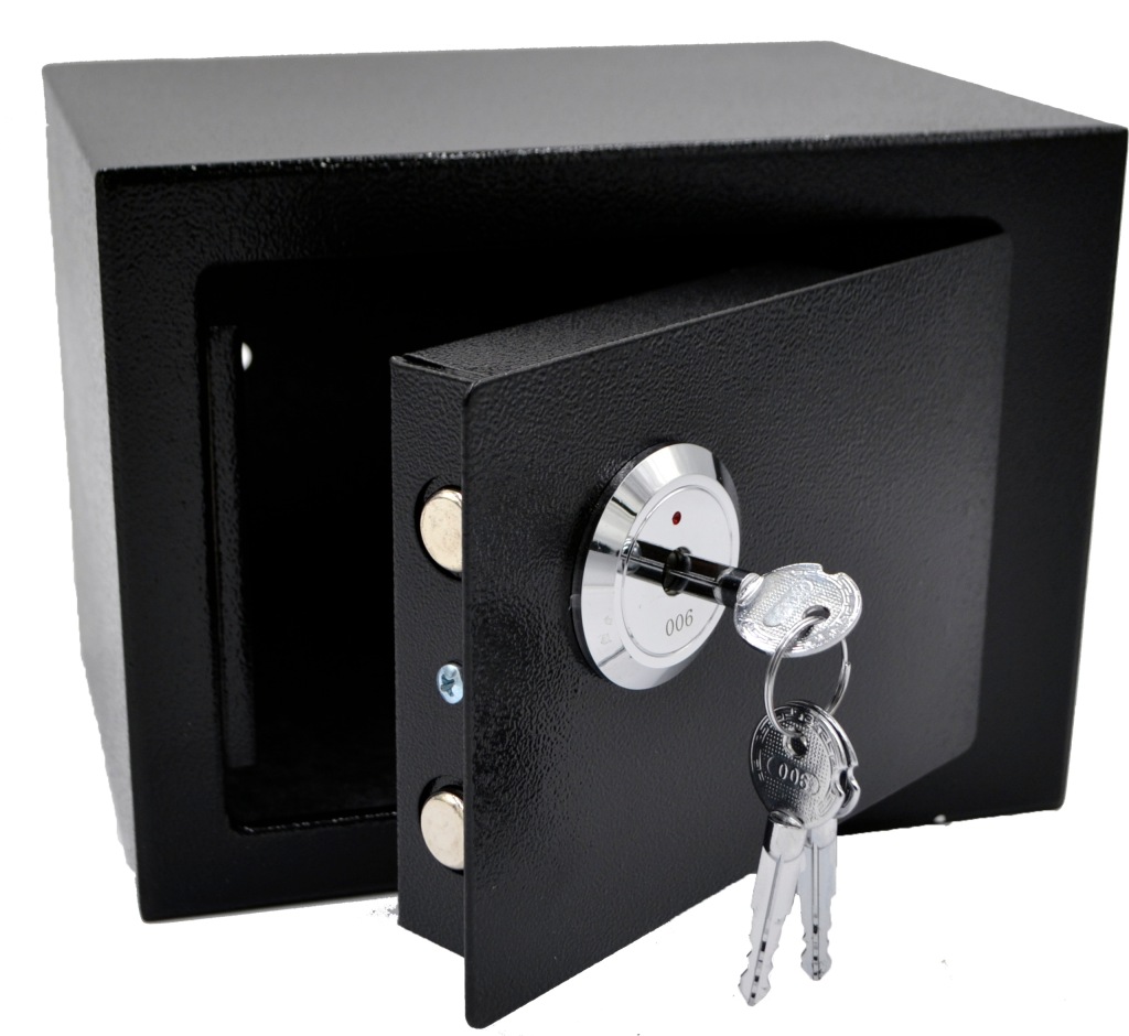 сейф містить міцний замок для ключів.
