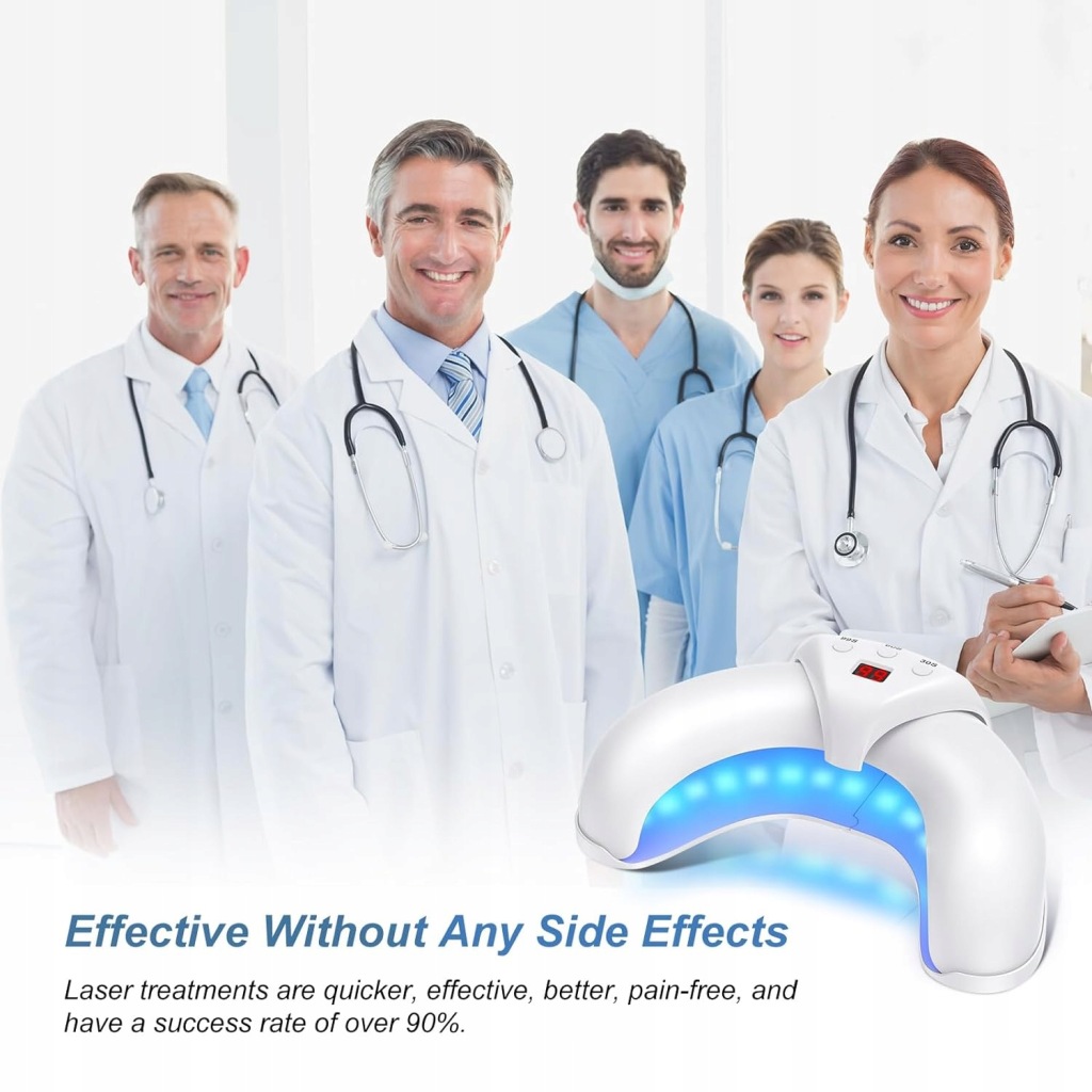 показано, що лазерне лікування оніхомікозу стопи є клінічно ефективним, і користувачі повідомляють про значне поліпшення зовнішнього вигляду нігтів при регулярному використанні. Лазер легко і ефективно проникає в ніготь, виділяючи тепло в зараженій області під нігтьової пластиною. Відчувається тільки тепло на нігтях. Ніякого болю не буде. При цьому процедура безпечна, безболісна і не викликає побічних ефектів.