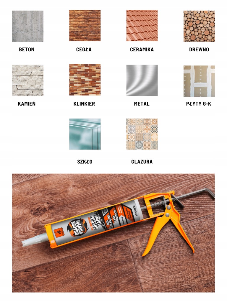 Сучасний клей на основі MS полімерів підходить скрізь, де потрібно прозоре (прозоре) зʼєднання. Міцний гнучкий, вологостійкий і водостійкий. Після повного висихання забарвлюється відповідними фарбами на водній основі (крім алкідних смол). Не закриває силікон.
