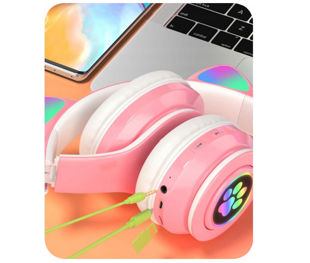 Відкрийте для себе світ музики з посмішкою! Бездротові навушники Bluetooth зі світлодіодними котячими вушками-це поєднання функціональності, стилю і веселощів. з тривалим часом роботи, можливістю відтворення з SD-карти і бездротовим режимом роботи, вам ніколи не доведеться турбуватися про те, щоб перервати гру. Ідеально підходить для подарунка для дітей, які люблять модний зовнішній вигляд і хорошу музику. замовте зараз і зробіть так, щоб ваша дитина насолоджувалася улюбленими піснями в унікальному стилі!