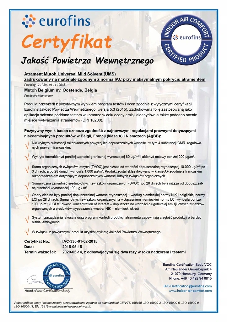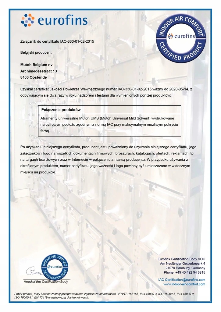 друк на оригінальних чорнилах UMS з сертифікатами.